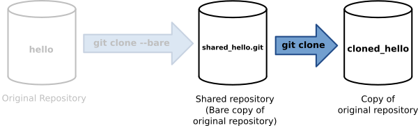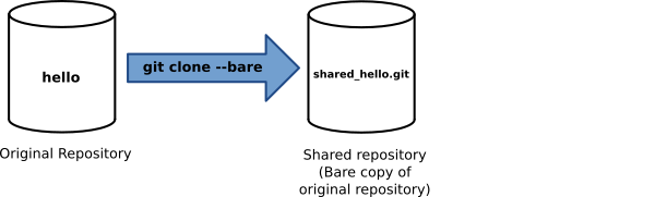 $ git clone --bare hello shared_hello.git Cloning into hello.git... done. $ ls hello shared_hello.git